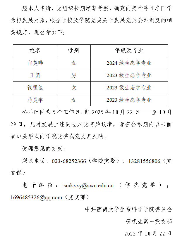 下一条:发育生物学与再生医学研究中心师生党支部2025年发展对象公示