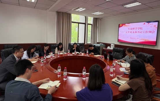 4月11日下午,生命科学学院召开2025年第一次党支部书记工作例会,学院党委书记蒋寒主持会议,党委副书记、纪委书记张颖、各党支部书记及组织员参会。